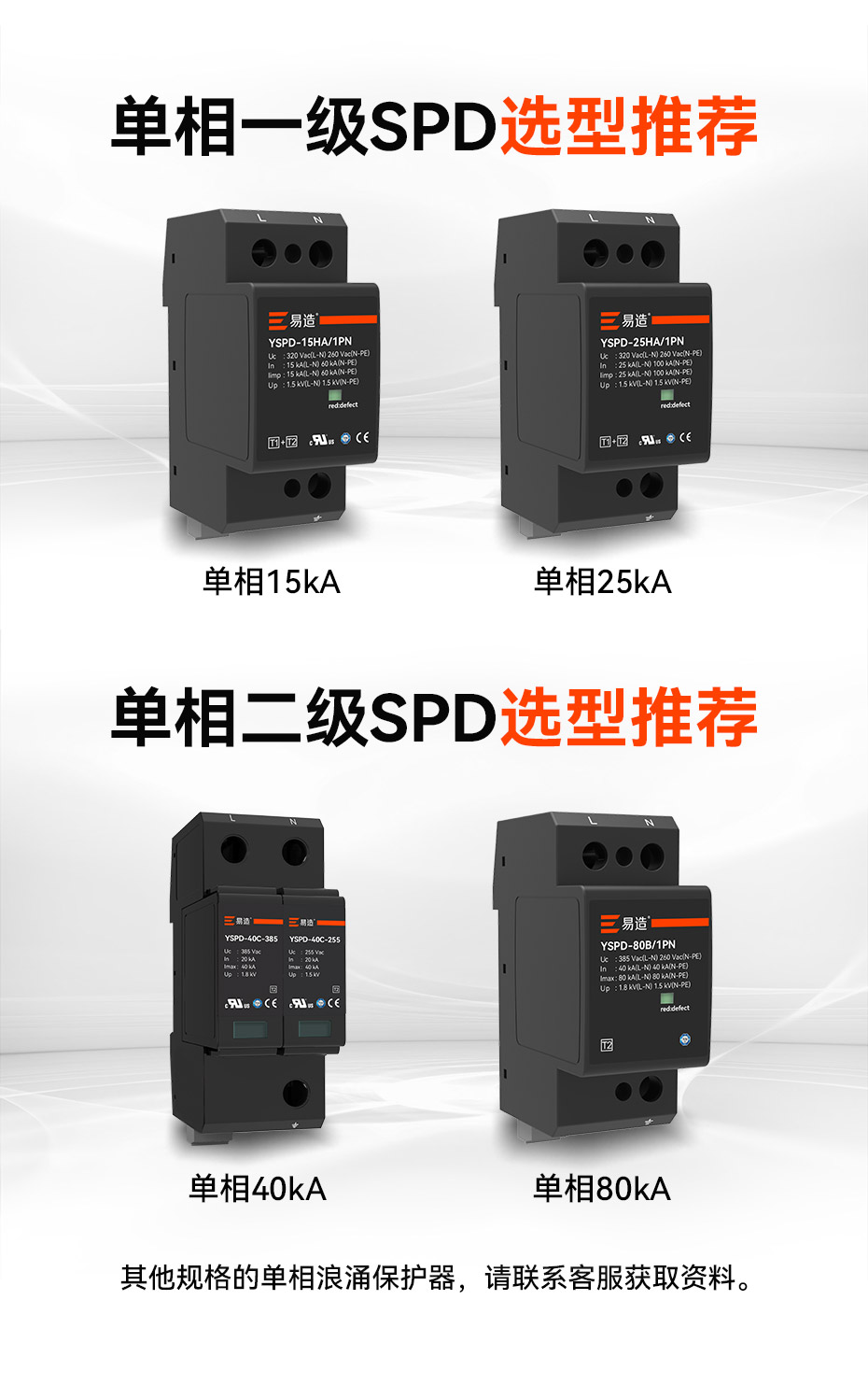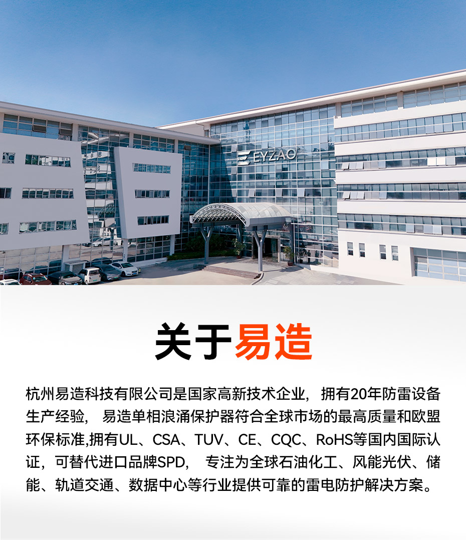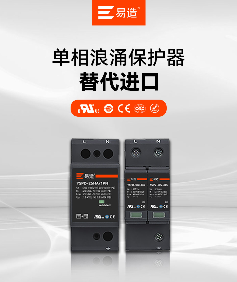 易造T1级、T2级单相浪涌保护器,规格型号齐全,拥有UL、TUV、CE、CQC等国内国际质量认证,符合全球市场的最高安全和RoHS欧盟环保标准,可替代进口品牌SPD,支持出口。