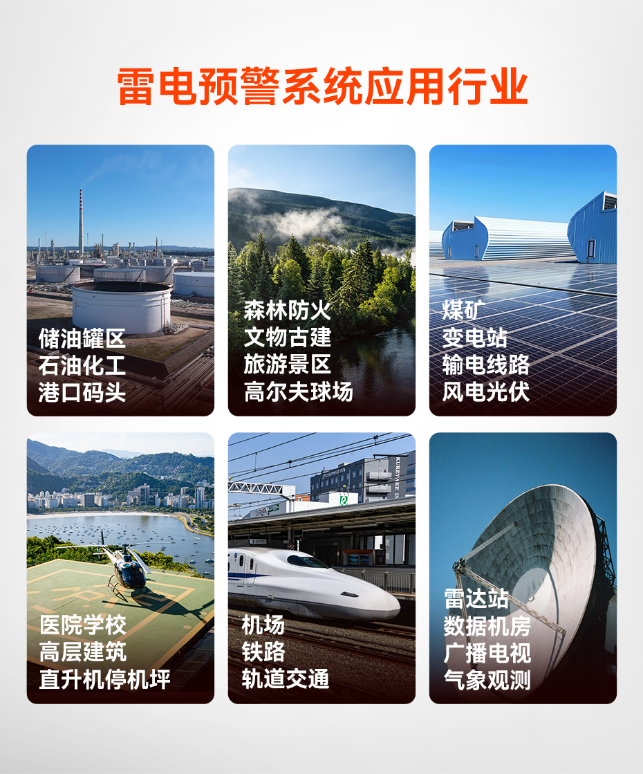易造智能雷电预警系统广泛应用于气象、电力、石油化工、港口码头、轨道交通、机场、景区、高尔夫球场等相关行业,为用户提供雷暴灾害事前预警,保障风险防控,提高用户安全生产水平。
